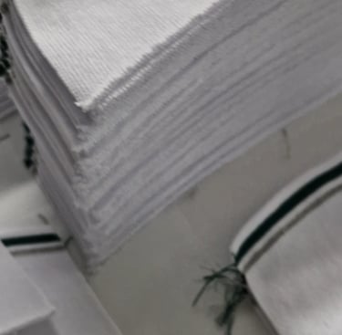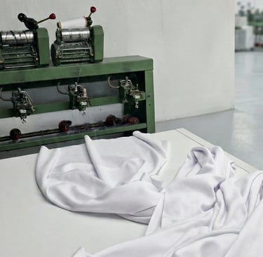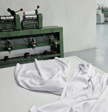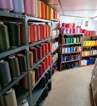 Utilizamos materias como algodón 100 %, poliéster-algodón, poliéster, poliamidas, rayón, lúrex e hilados reciclados, y añadimos, si se desea, todo tipo de lycras para aportar mayor elasticidad a los tejidos.